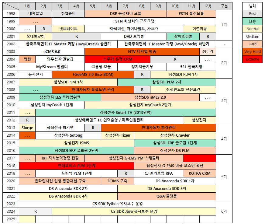 | 51 | 2025.03 ~ 2026.03 12M 25Y 10M | 삼성전자 | 삼성전자 DS SDK Java 유지보수 운영 ('25년) | PM |